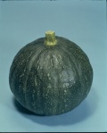 ●果皮は黒緑色の球形で、果肉は厚く、肉質は粘質。平均果重2~2.5kg程度になる大玉種。