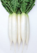 ●葉は濃緑の半立性示し、葉数は少ない。首部の色は極淡緑色で、適期収穫では、根長35cm根径7~8cm、根重1.2Kgに仕上がる総太り型大根である。