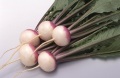 ●肌は肩の部分が鮮紫色、下の部分が白色。根部は腰高の偏円形で肥大性に富む。ひげ根はなく、尻もまとまりやすい。肉質はち密で甘みが強く、食味もよい。